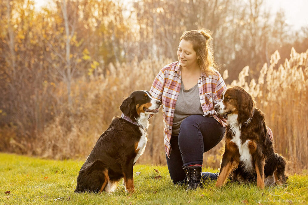 Elle partage son quotidien avec ses trois chiens : Mulan, un bouvier bernois, Willy, un berger de Shetland, et Merlin, un labrador chocolat. Cette relation nourrit directement sa pratique.
